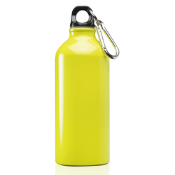 Excite your customers with our sporty aluminum bottle! This 20 oz. Sports bottle is made of colorful glossy aluminum and features twist cap with carabiner useful for outdoor and hiking activities. With a large imprint area of 3"H x 1.5"W, this is perfect for advertising your logo. Include these trendy Aluminum water bottles in your next trade show and promote your brand like never before! Dimensions: 8" x 3".