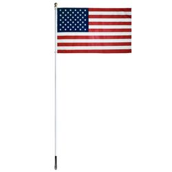 Our Deluxe Aluminum Display Pole is perfect for in town businesses and homes where large areas of land are not available for a large flagpole. This pole is also perfect for portable display at flea markets, yard sales, trade shows, and more. Product includes: 1" Diameter silver aluminum pole with quick button release locking sections, plastic threaded ball top, flag clip and two rings, ground sleeve & a printed US flag.
